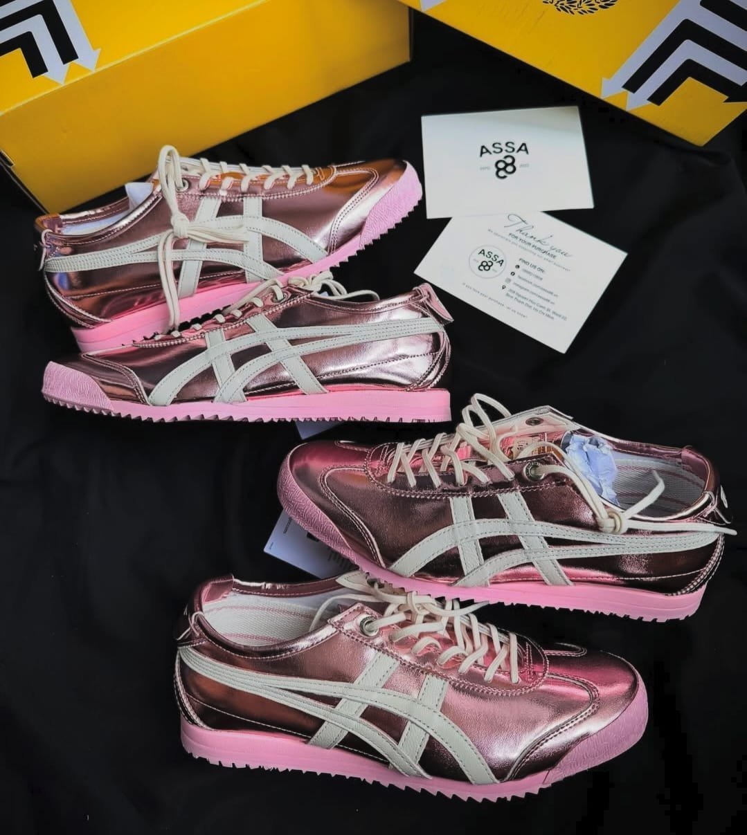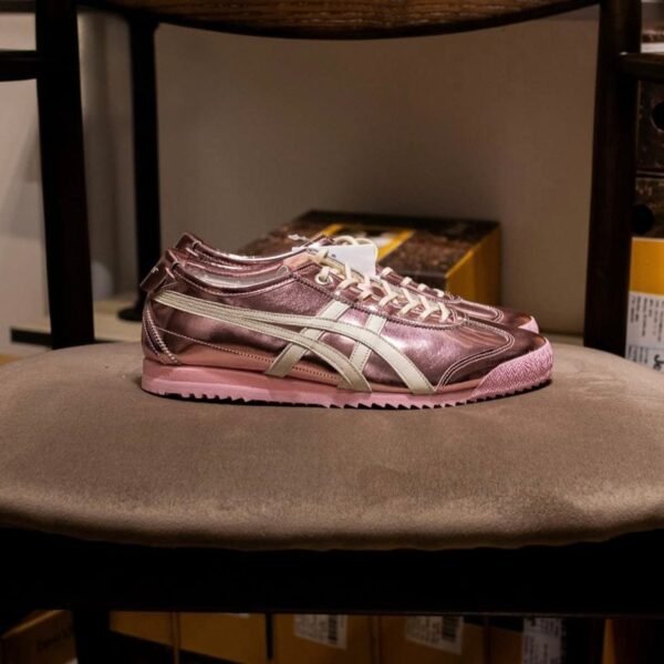 Step into the spotlight with the ACS OT Mexico 66 – Crystal Pink Edition! These high-quality, premium sneakers blend iconic Japanese craftsmanship with a bold modern twist. The eye-catching metallic rose chrome upper is perfectly balanced with the classic cream ACS OT stripes and a sweet pastel pink sole – turning every outfit into a head-turner!