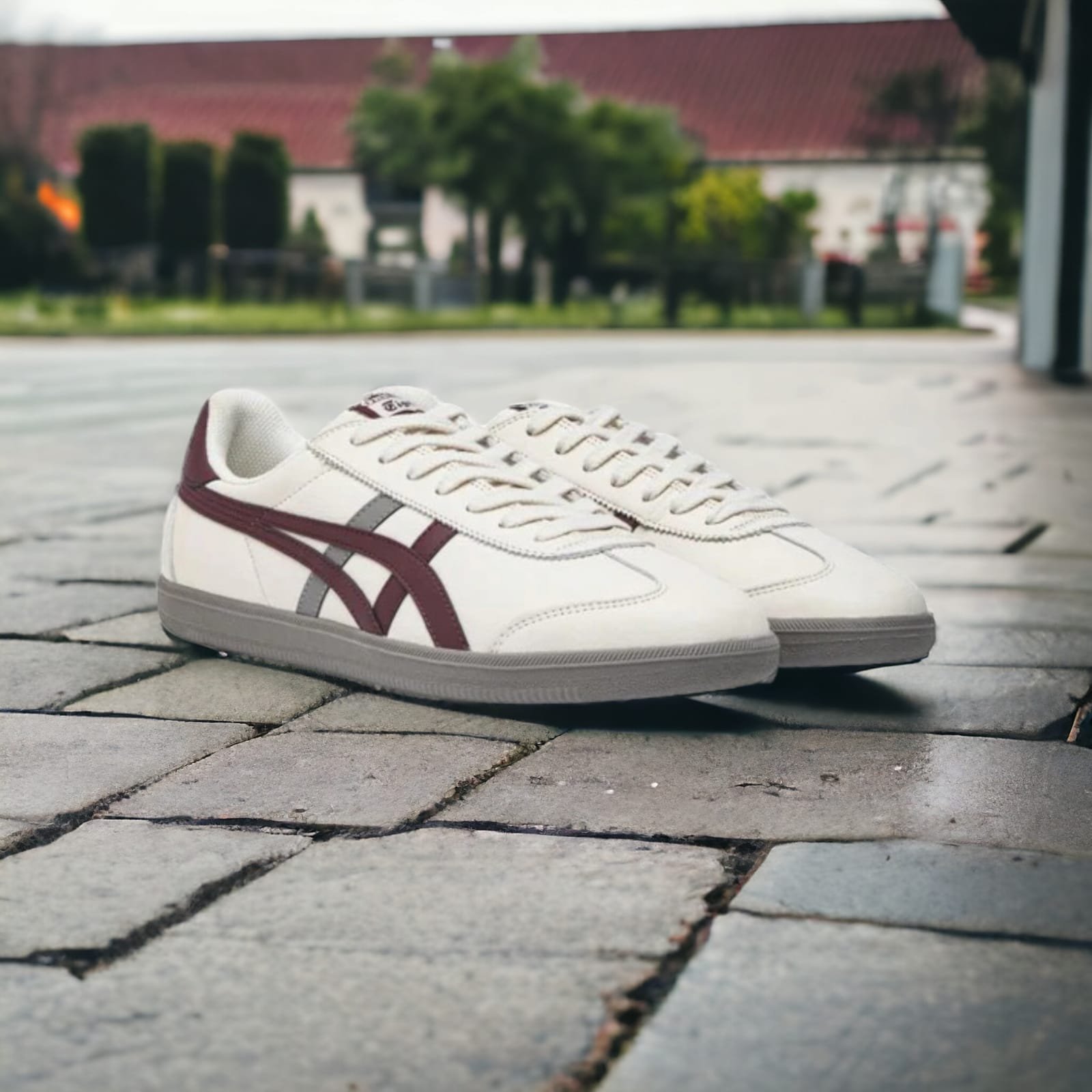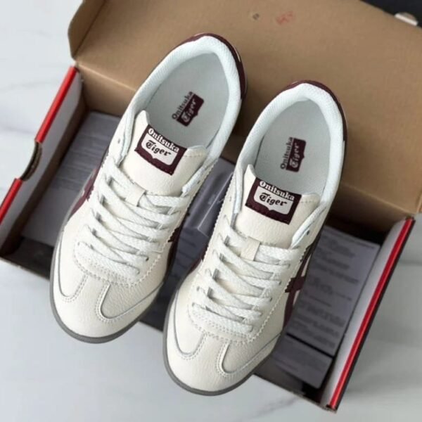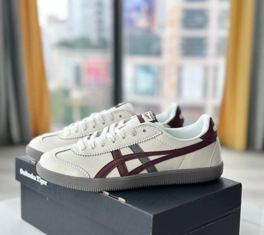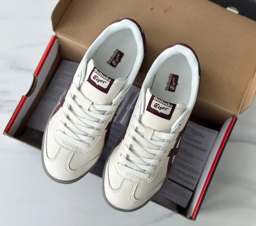Crafted with premium quality materials, these kicks bring both style and comfort to your everyday look. The iconic Tiger stripes in maroon and grey over a cream white base elevate your outfit whether you’re walking the city streets or heading out for a casual day.