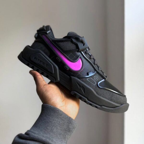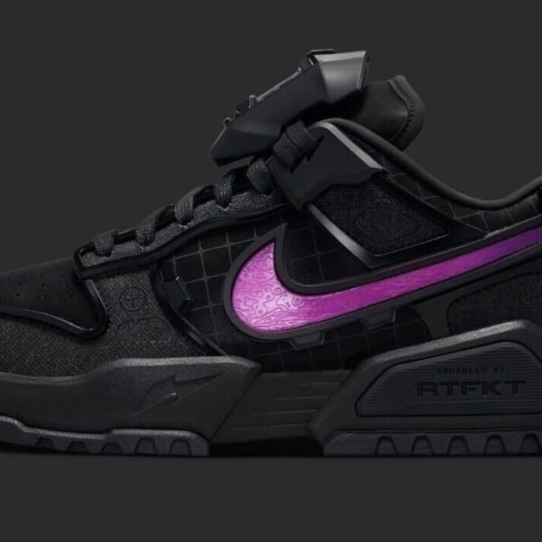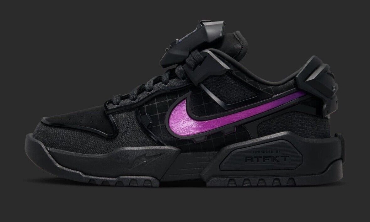 Elevate your sneaker game with this cutting-edge design from NK x RTFKT! Crafted with high-quality materials, this futuristic sneaker blends fashion-forward design with comfortable wear. The iconic NK Swoosh in bold purple adds a pop of color to the sleek, black exterior, while the RTFKT branding showcases the collaboration’s innovation.