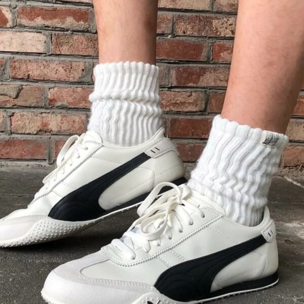 🖤 Premium Quality: Crafted with high-grade materials, these shoes are made to last. Featuring a smooth white leather upper with contrasting black Puma stripes for a bold, timeless look.